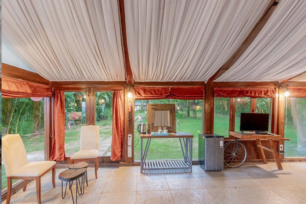 The Camel Cabin is a meticulously themed room that is extremely immersive and exudes opulence with its combination of traditional artistry and modern comfort. The ornate side table is a testament to grandeur, and a mini fridge helps you keep refreshments within hand reach. Plush armchairs adorn the stone-tiled floor, cool against your feet. The elegance is further heightened by dainty little wooden stools and tables where you can hold intimate conversations. Your bathroom is huge, as is the stone-embellished bathtub, which is a sanctuary of indulgence. A spacious wardrobe provides storage expediency, while a kettle ensures you have your hot beverage at your convenience. Step into a private balcony ideal for two, four or even one and get an eyeful of the mountain and valley view.
