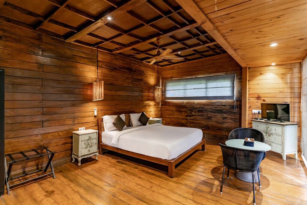 The Tree Hugger is also a mountain-top beauty that actually has a tree embedded in its portico. Tree hugger is the Best Tree House Villa at Forest Hills Tala Resort with beautiful hilltop view near Mumbai and Pune. Be enchanted by the rustic wonder of this accommodation that beholds a view of the river in all its glory. Enter inside this cozy space to a beckoning king-size bed and a chair and table that help you simply lounge around. Walk around with a cup of tea and feel the charm of nature and the heart of the forest. The accommodation is very wooden and encompasses a close-to-nature theme. A tiled pathway to the accommodation is worth the trek – as you cross over beautiful green grass along the way.